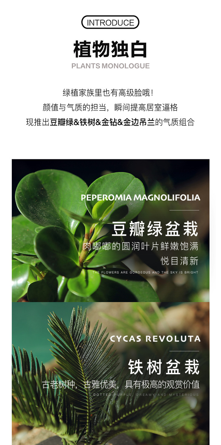 「绿植高级脸」| 豆瓣绿+铁树+金钻+金边吊兰